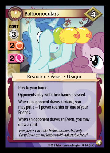 Here on this page you'll find an overview of all My Little Pony Balloonoculars CCG Cards, with a total of 1 release. You can click on the Balloonoculars CCG Cards images to zoom in or click on any of the links under the images to see more releases of that type.