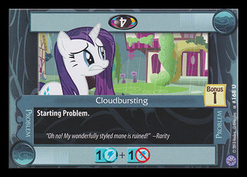 Here on this page you'll find an overview of all My Little Pony Cloudbursting CCG Cards, with a total of 1 release. You can click on the Cloudbursting CCG Cards images to zoom in or click on any of the links under the images to see more releases of that type.