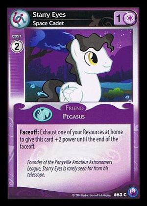 Here on this page you'll find an overview of all My Little Pony Starry Eyes, Space Cadet CCG Cards, with a total of 1 release. You can click on the Starry Eyes, Space Cadet CCG Cards images to zoom in or click on any of the links under the images to see more releases of that type.