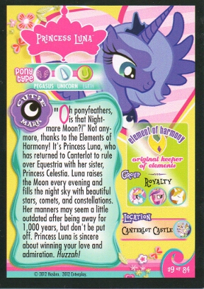 Canterlot: Princess Celestia and Luna 2-Pack (2011)Combined with Princess Celestia, Target exclusive